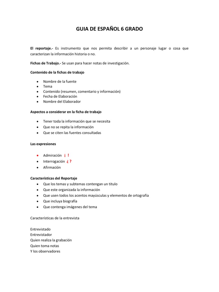 Guía para clase de sexto grado.